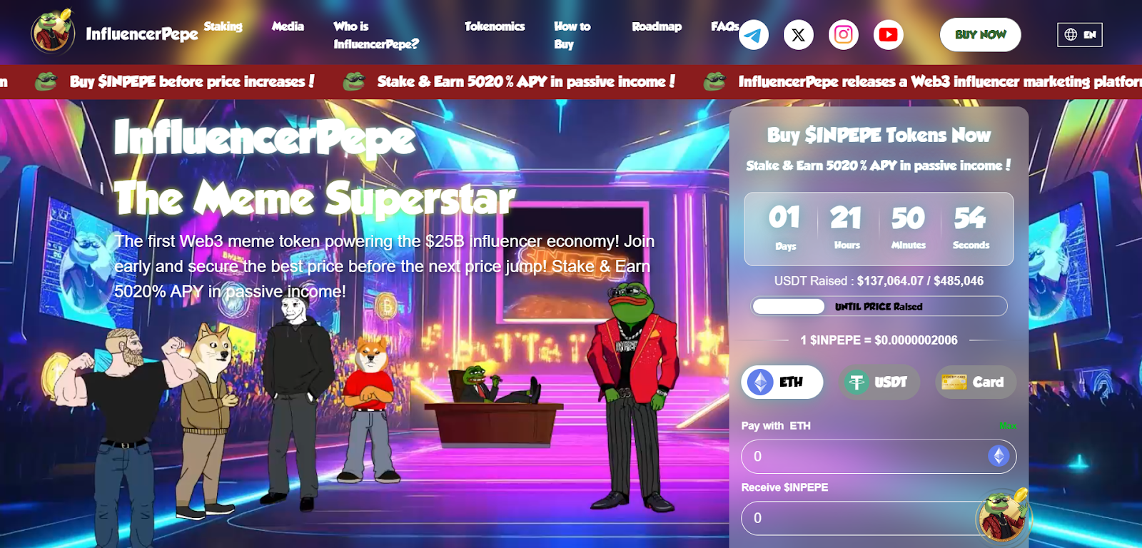 Influencer Pepe (INPEPE) is gaining traction as the next-gen memecoin, uniquely positioned at the intersection of Web3 and the booming $25+ billion influencer economy. Unlike traditional meme tokens, INPEPE aims to be the official currency for influencer payments, offering: