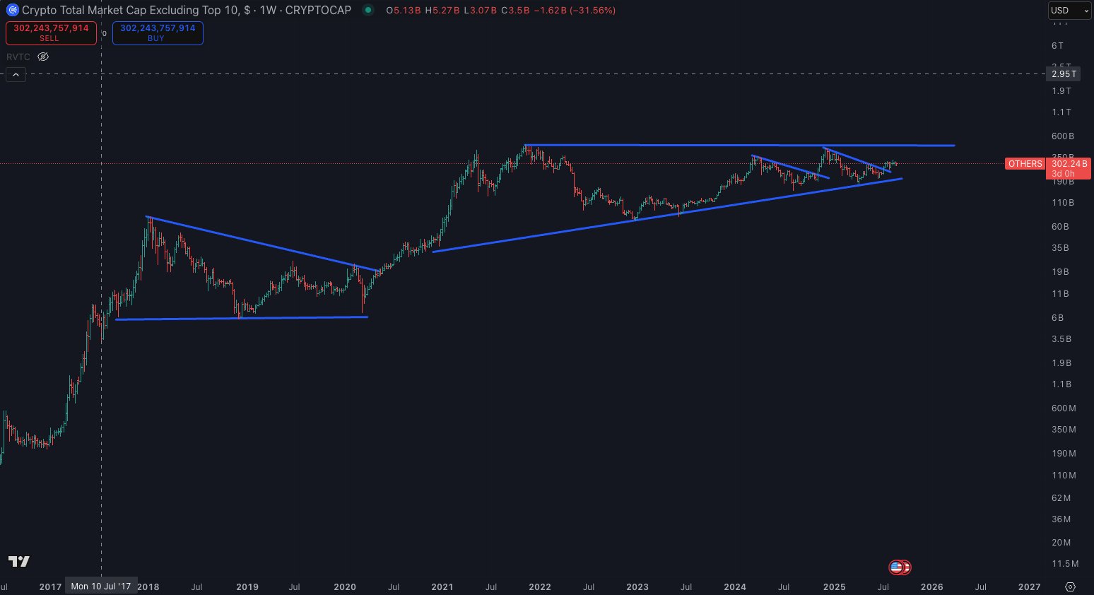Raoul Pal said that there are those who are in the bench to be included in the game and shared the Others graph, where the largest crypto currency is kept out, he said there is time for the rally here. This is LINK, Pump and so on it means that a general rise for almost all crypto currencies is not yet to begin.