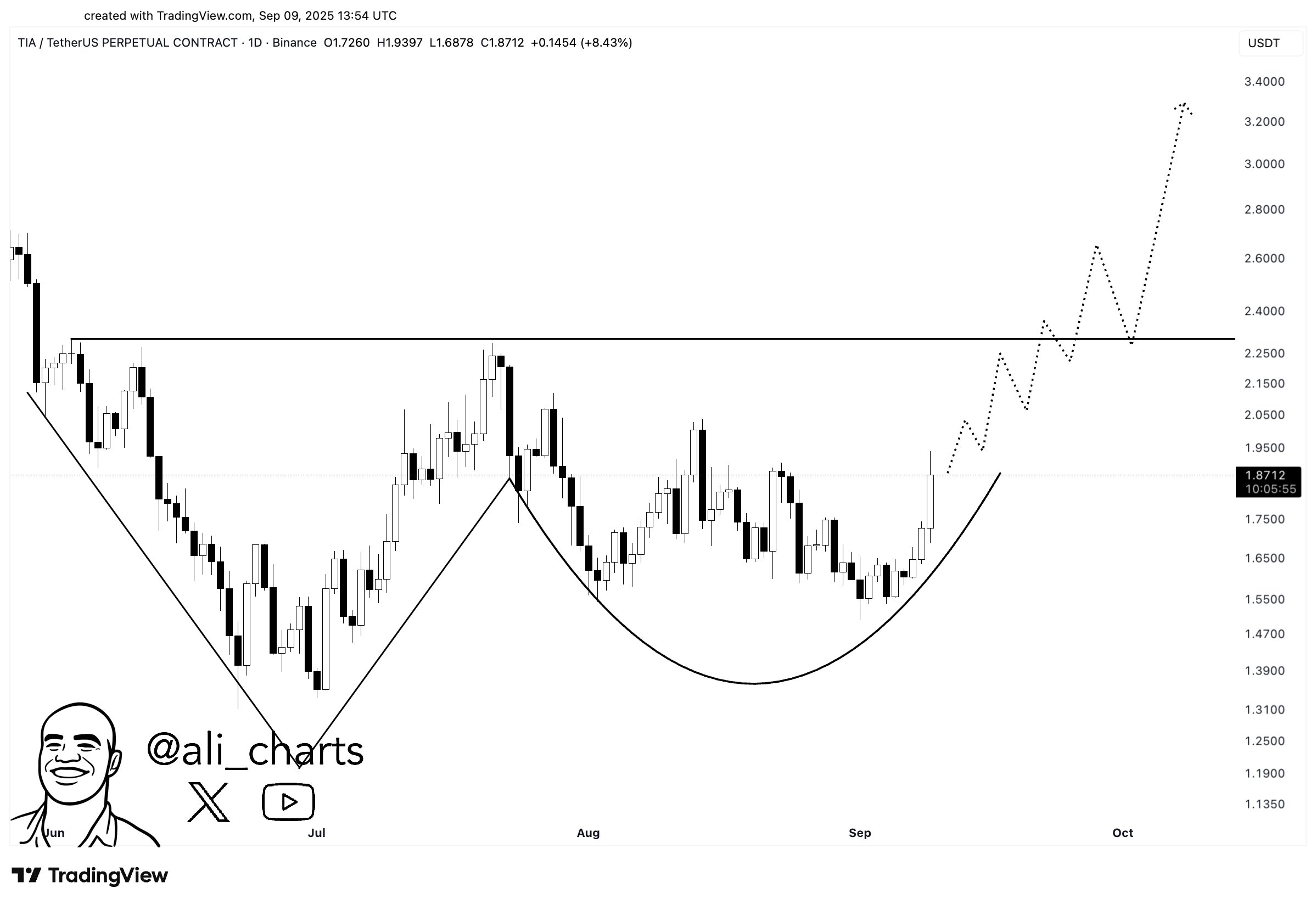 Ali Martinez today TIA Coin‘i on the agenda. He wrote that the Altcoin could move for $ 3.2 due to its installation of the man & home in the graph.