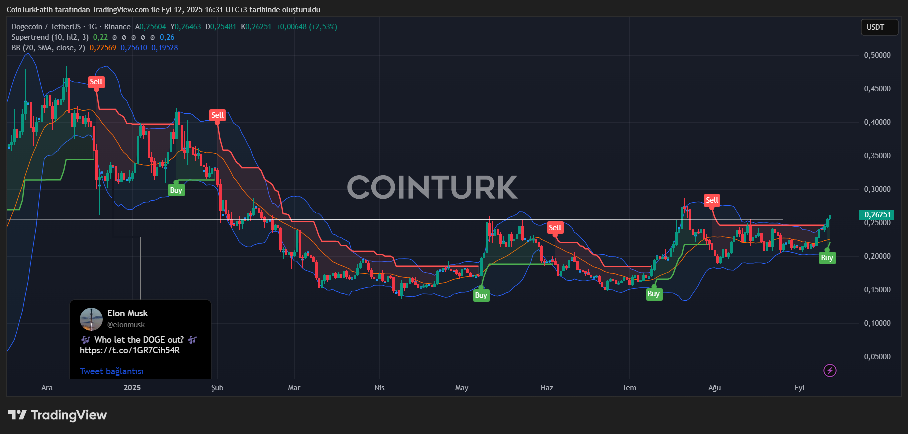 For more than 200 days of $ 0,254 Dogcoin $0.26261 We were talking about the alarm level for. Finally, this lock threshold was exceeded for the second time. We will see a scenario in which the risk appetite is more revived in the environment where the closing continues.