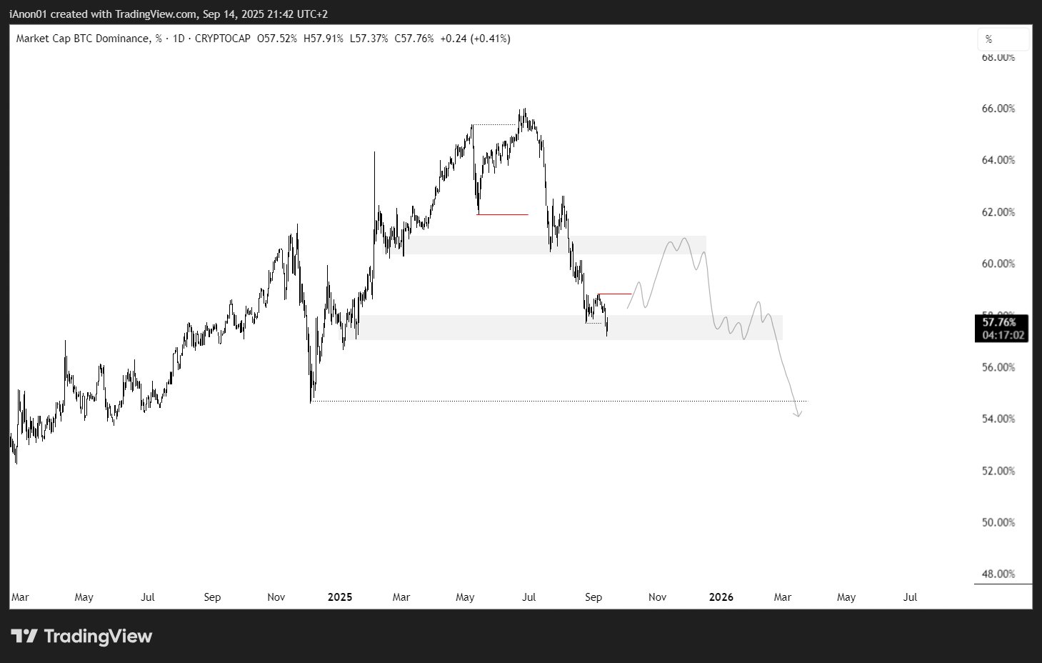 Provided by CoinMarketcap Altcoin Season Index It rose to 72 last week. However, technical indicators are in the short term. Altcoin seasonHe points out that he may not start. Bitcoin’s market share (BTC.D) also gives a sign of recovery from the critical support level. Exceeding the 57.5 level can lead to the market share of the largest crypto currency to 60 percent. This may increase the superiority of Bitcoin to Altcoins in the short term.