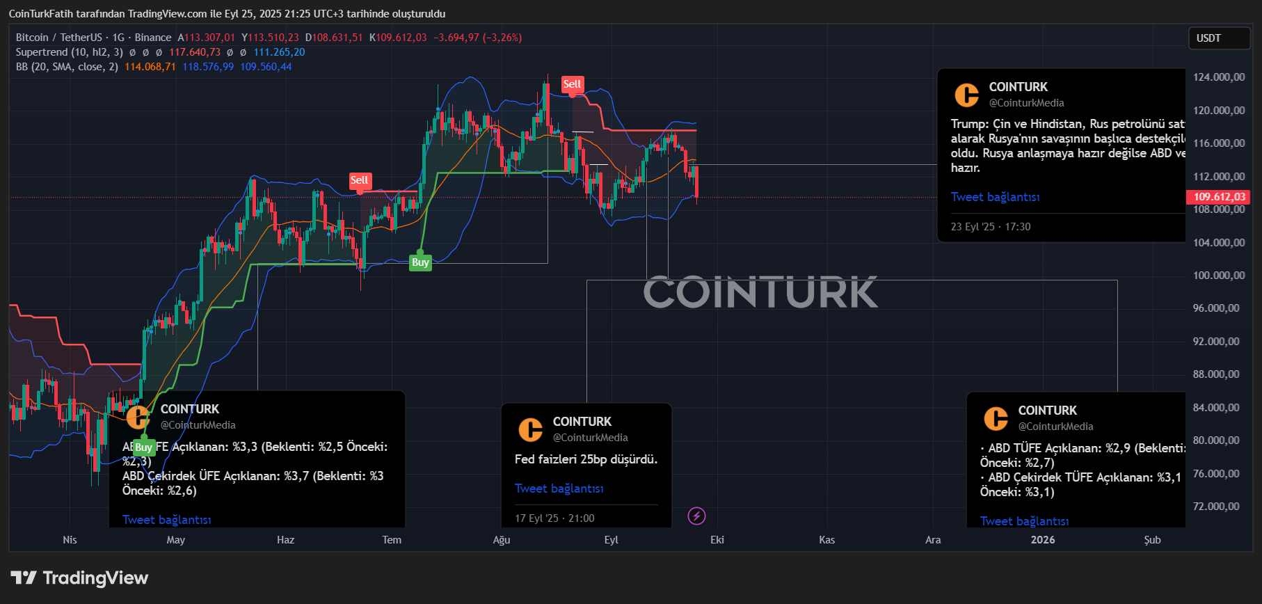 The 108 thousand dollars test took place as expected and we have discussed the expectations in crypto currencies for the next week in detail. You can review the link. We tested it because it could not be kept in a significant support of around 108,350 dollars and $ 112 thousand. For now, the price returns to $ 109,500 here, but we cannot say that the decline is over yet.