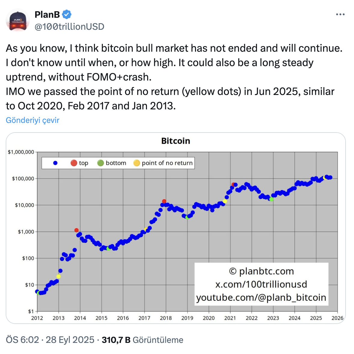 The recovery in Bitcoin took place on an important threshold that would determine the short -term course of the market. The inventor of the Stock-to-Flow model Planbthe bull market has not ended and the price in the long run can maintain the rise trend, he said. Analyst Zynx In each cycle, he said that the target of $ 300,000 has become possible by reminding that it has doubled its value compared to under Bitcoin. According to him, the level of $ 151,000 can be exceeded within six months.