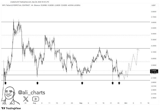 Ripple’s XRP currently trades around $2.89, with traders and analysts predicting a potential breakout soon. Analyst Poseidon recently stated that “XRP is heading to $4 sooner than we think.” This is significant because passing $3 could unlock new price targets, such as $3.2, and eventually $4.