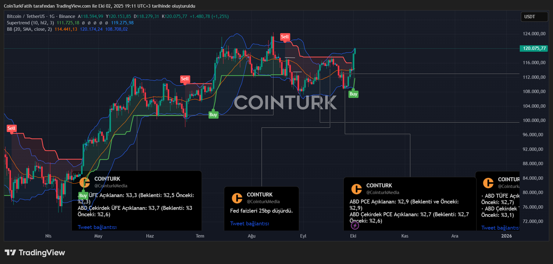Exactly 50 days later, the king crypto currency returned to $ 120,000 again. The price that remained stagnant for about 2 months was frightened by Altcoin investors with its constant local support tests. However, things were reversed when ADP data came much worse than expected and confirming that there was no significant increase in inflation of Friday PCE figures. Since the unemployment figures were at the worst levels of 4.5 years, the October interest rate reduction was finalized.