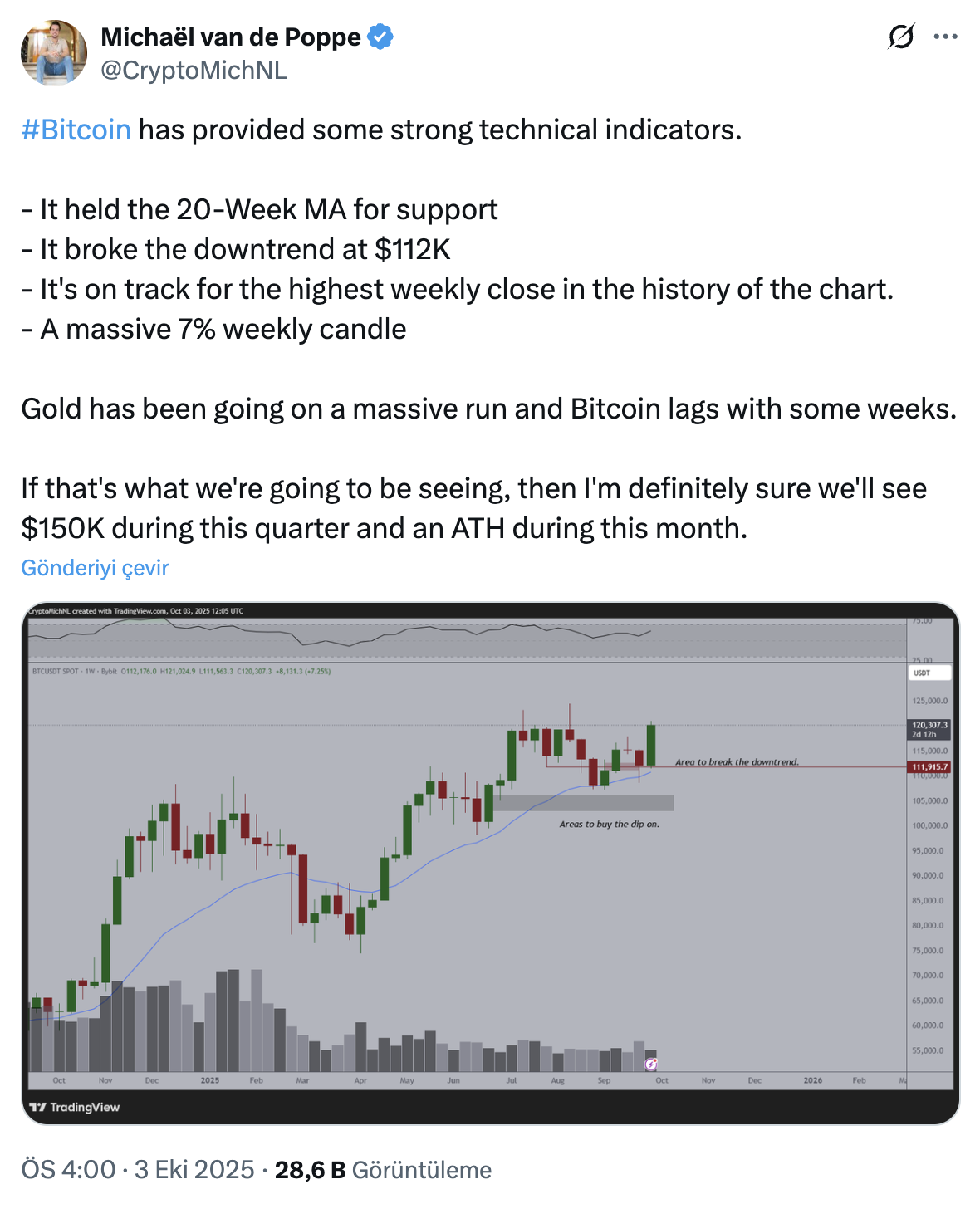 Bitcoin $122,485.31While overcoming the $ 120,000 threshold, the expectation of rise for October is strengthening. The Bull Theory The team has an area up to $ 143,000 in the month. The foresight of the team means that there may be an increase of approximately 20 percent in the rest of the month. Analysts evaluate that historical data and current technical signals indicate in the same direction and that record levels can be tested in a short time.