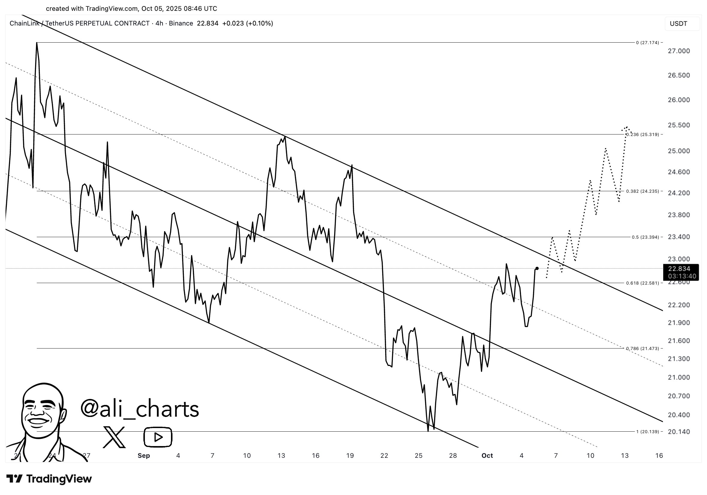 Chainlink $22.86 (LINK) Ali Martinez has come back. I wish agreement with the world’s largest companies Chainlink’s Altcoini has a little desire to return. The graph has not yet broken the falling trend, but Martinez awaits a movement extending to $ 27 with closing over $ 23. Investors have been disappointed for so long that if LINK Coin can succeed, they can start the historical movement by overcoming the resistance and test $ 50 quickly.