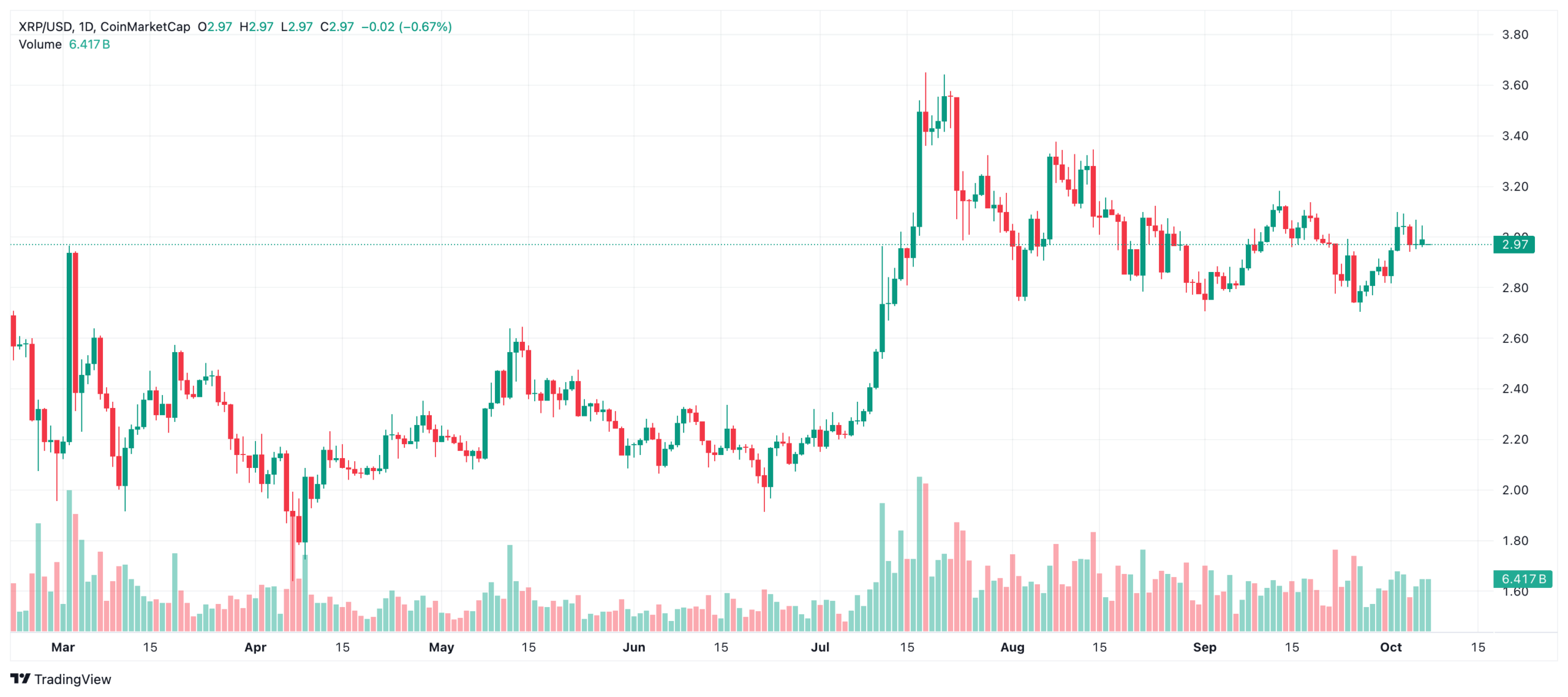 Cryptoappsy According to data, the XRP is traded for $ 2.97 with a decrease of 0.02 percent in the last 24 hours at the time of preparation.