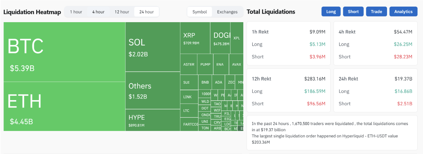 According to CoinGlass data, the platform with the most liquidations was Hyperliquid, and a total of $10.31 billion in positions were deleted. It was followed by Bybit ($4.65 billion) and Binance ($2.41 billion). On other major exchanges such as OKX, HTX and Gate, losses were recorded as 1.21 billion, 362.5 million and 264.5 million dollars, respectively.