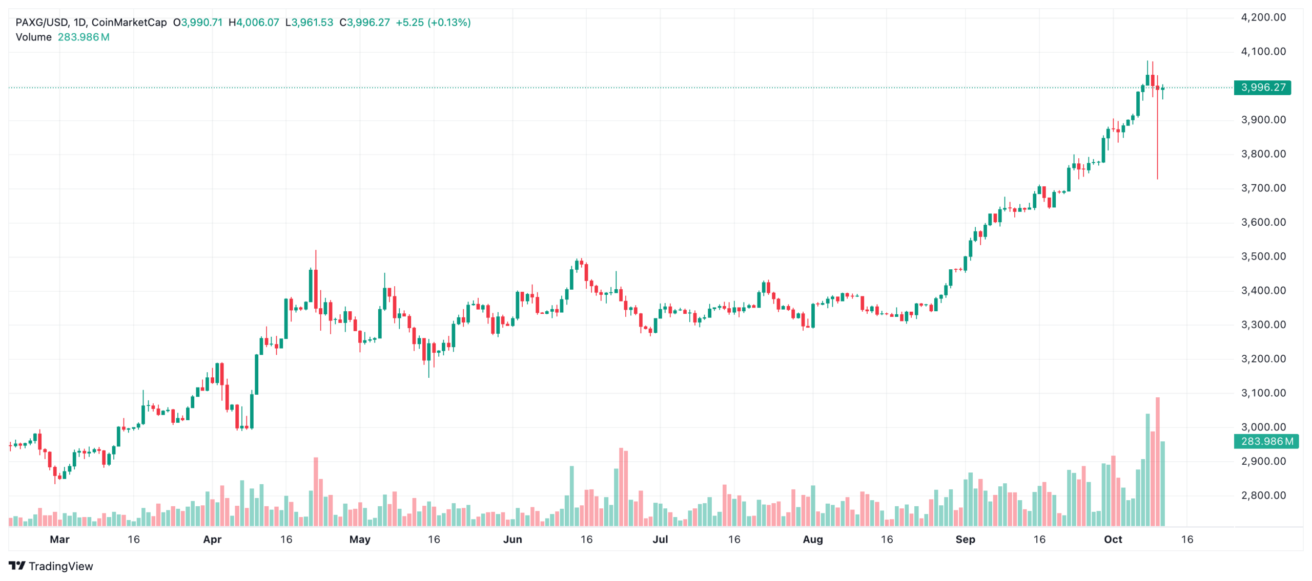 While Bitcoin fell 8.5 percent in 24 hours during the liquidation frenzy, the basket reflecting the performance of the 20 largest cryptocurrencies lost 12.75 percent in value. In the same period, Paxos PAXGTether decreased by 0.23 percent to around $3,998. XAUTIt was traded at $4,010 with an increase of 0.2 percent. Since both cryptocurrencies are collateralized by physical gold reserves, pricing ounce of goldIt progressed in parallel with closing the week close to $4,018. Returns on gold ounces have exceeded 50 percent since the beginning of the year.