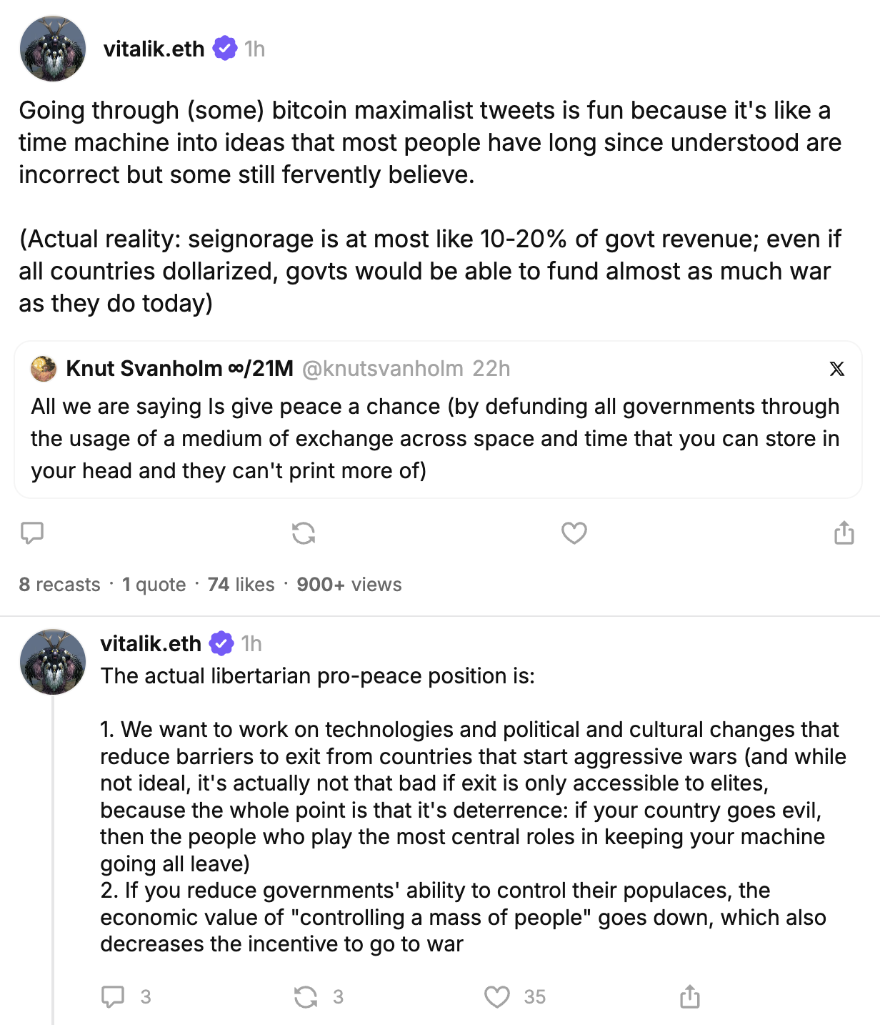 “The real picture is that state money printing accounts for at most 10 to 20 percent of government revenues. Even if all countries were to dollarize, states could continue to have war expenditures as high as they are today,” he said. Bitcoin maximalistsHe claimed that it distorted economic realities.