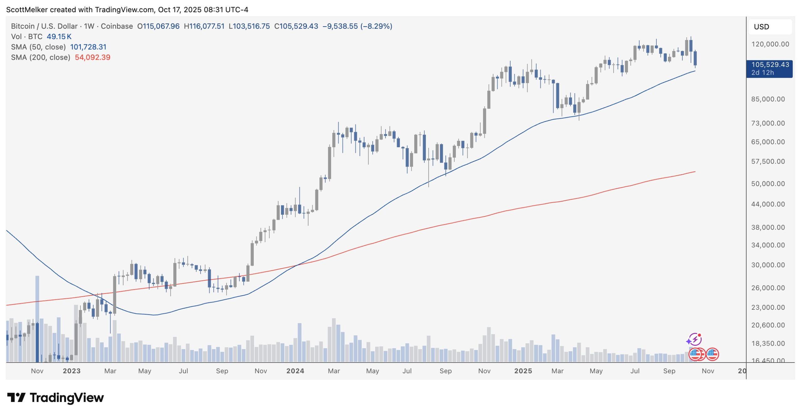 BTC needs to maintain the weekly level of $101,700 to prevent us from seeing larger declines in altcoins. Scott Melker reminded that there has been no candle closing below the weekly 50 MA area since March 2023, and reminded that this is the level that should be protected.