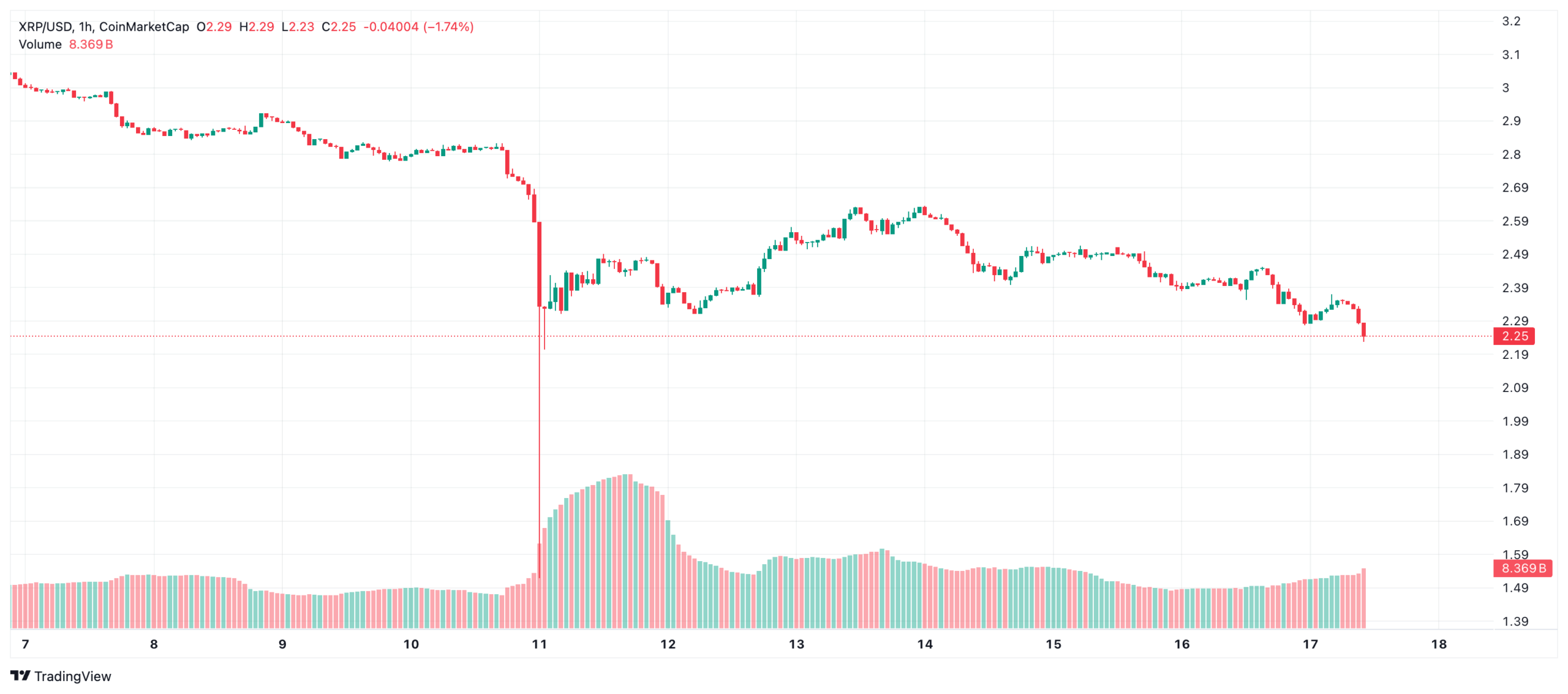 CryptoAppsyAccording to the data provided by XRP, it is struggling to stay above the $ 2.20 threshold, falling 7.37 percent in the last 24 hours. Data reveals that the price has decreased by 20.67 percent in the last 7 days.