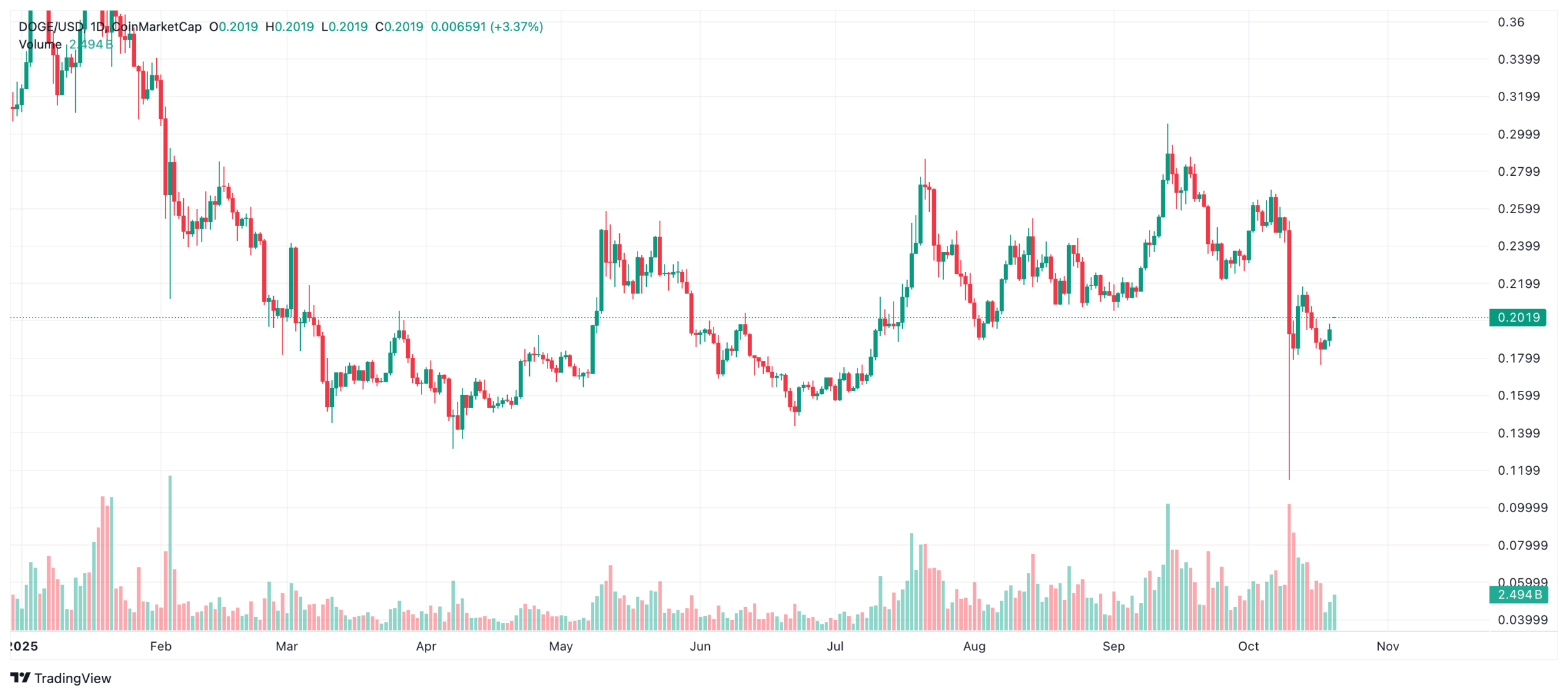 CryptoAppsy According to the data, DOGE is trading at $ 0.2018 with an increase of 6.85 percent in the last 24 hours at the time of writing.