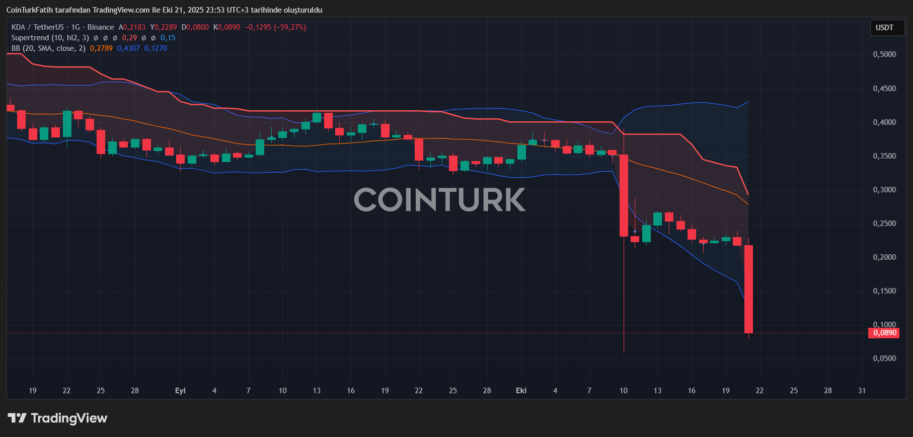 Thus KDA Coin As we continue the day with a loss of nearly 60 percent, the fullness of the bearish candle shows that there may be more. The sad part is that the bottom below the October bottom will mean the new ATL. KDA, which once found buyers above $9, will now likely have a price with more leading zeros.