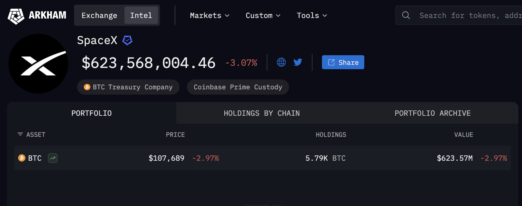SpaceX warns of Terra-Luna crash and its aftermath in mid-2022 FTX After its bankruptcy, it reduced approximately 70 percent of its reserves. The company did not purchase new Bitcoin after the chain liquidation crisis at that time. Musk’s other company in the same period Tesla He followed a similar path and sold most of his BTC. According to Arkham data, Tesla has 11,509 BTC worth $1.24 billion.