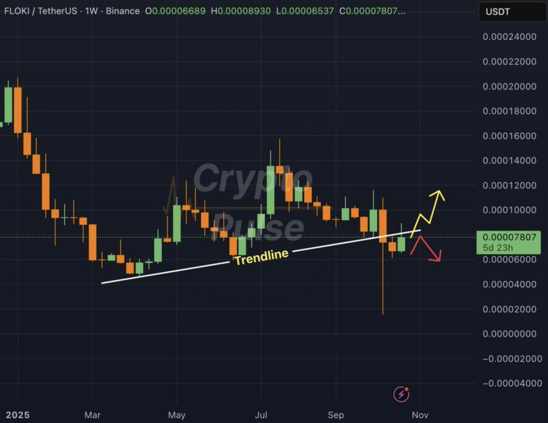 However, analysts warn that if the price closes one or more days below $0.00009, a correction to $0.00004 could occur in the short term. Floki’s trading chart signals a bullish formation on a weekly scale. This shows that the Musk effect is not just a short-term social media wave, but also a technical breakthrough may be on the table.