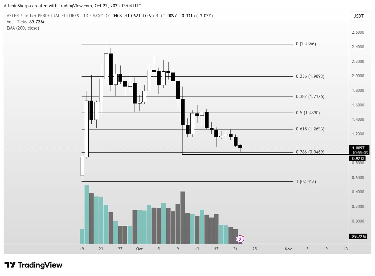 Aster Coin is among the analyst’s favorites, and CZ’s clear support is very much felt here. Sherpa says here we will see movement in the market average and there will be no bounce. The key support to protect is at $0.946 and the hurdle for upside is $1.265.