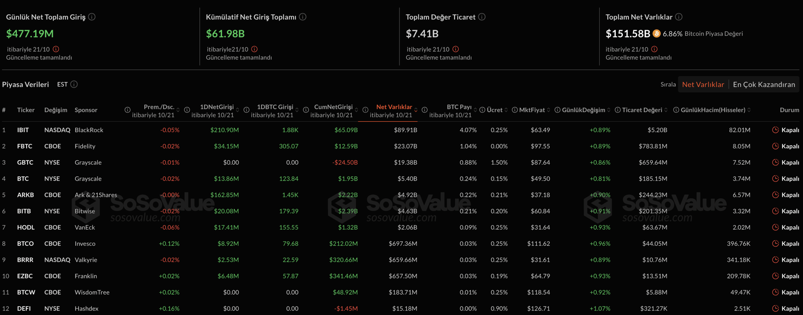 In recent days, there has been an outflow of over $1 billion from cryptocurrency-based investment products due to trade tensions between the USA and China. However, with Tuesday’s entries, the total transaction volume reached $7.41 billion. Volumes ranging from 5 to 9.78 billion dollars throughout October are considered to indicate a rapidly increasing institutional interest compared to the 2-4 billion dollar range in September.