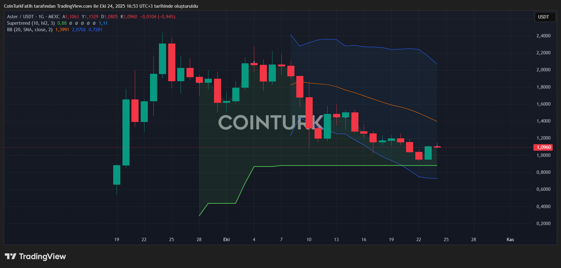 Aster Coin maintains $0.94 as support buyback program It is above $1 again due to the positive developments in Binance. However, since we cannot see closings at $ 1.13 or above, it is difficult to talk about a definitive return for now. Here, maintaining the psychological support of $1 is enough for now to prevent further decline.