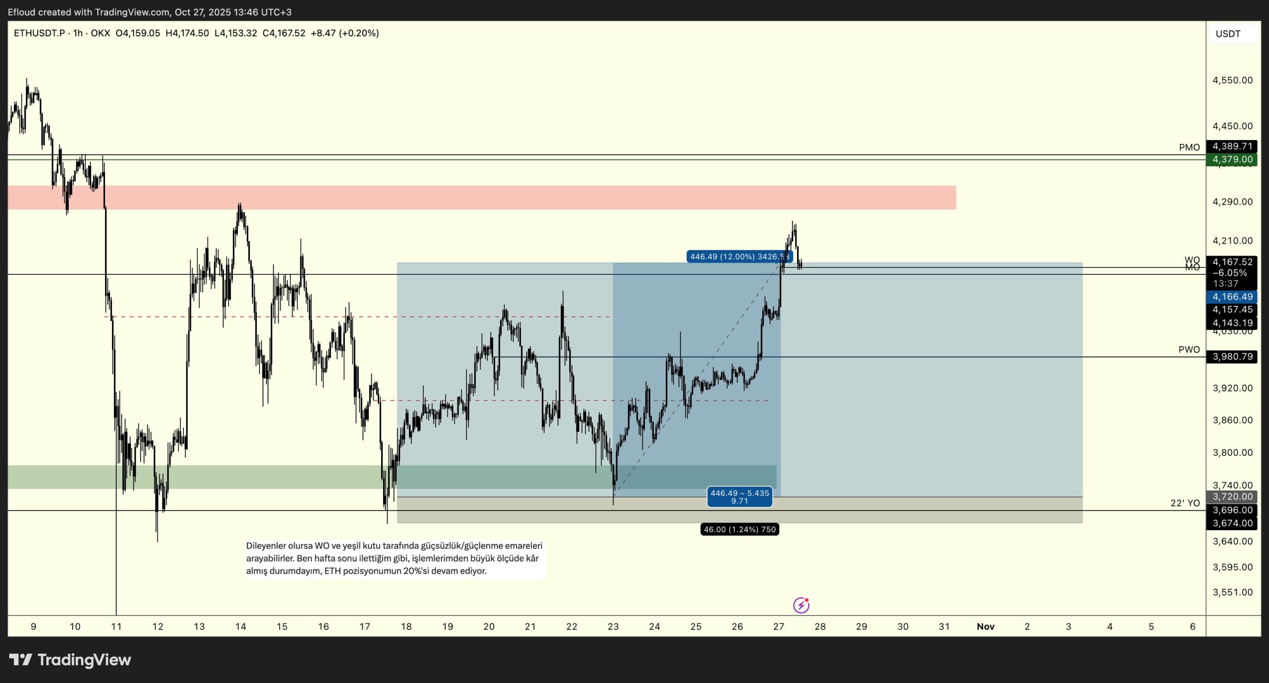 The largest altcoin by market cap ETH As we moved into November, it regained $4,000 again. Moreover, if an agreement is signed with China this week, the rise can gain momentum with the strong earnings reports of the technology giants and we can have a much better start to the new month. Additionally, BitMine announced that it received another 77 thousand ETH last week. In other words, it increased the total size of its cryptocurrency and cash assets to over 14.2 billion dollars.