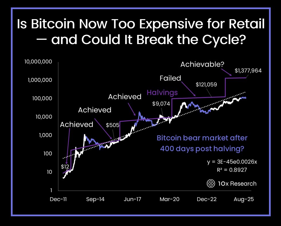 According to 10x Research, Bitcoin is now becoming increasingly expensive for retail investors, weakening the credibility of the classic “four-year cycle” theory. The report states that the cryptocurrency market should be analyzed based on demand-based data sets, not supply-side models. The message “Bitcoin’s past performance does not determine the future” drew attention in the analysis.