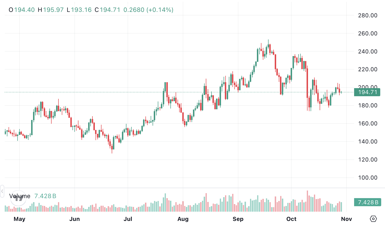 In technical analysis, the $194-195 range stands out as the first support, and the $196.5-197 and $200 levels stand out as short-term resistance thresholds. Although there is a possibility of a test up to $203 on this region, the low trading volume indicates that the upward movement may remain limited. If the support zone is broken, analysts do not rule out the risk of a correction to the $188–180 region.