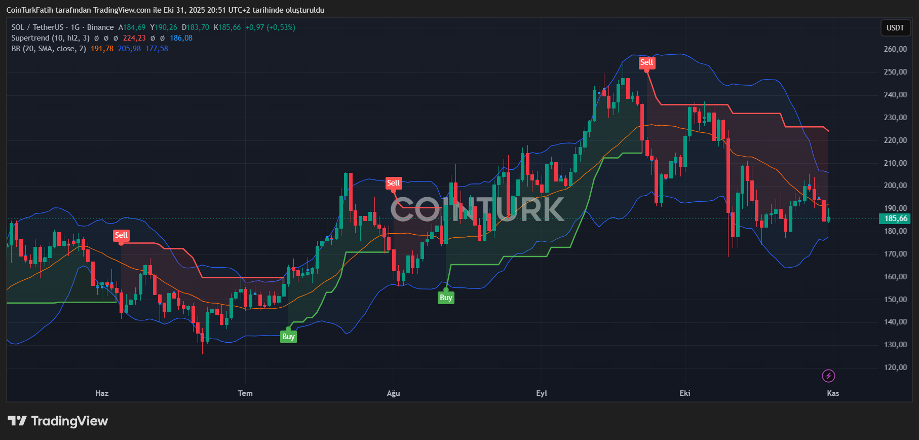 Solana (LEFT) Among those waiting for spot ETF approval next month, and news that the shutdown will end may feed this expectation and trigger the rise. Since it is stalled above $178 for now, there is no risk of further declines and it should gain and protect the $188 base. In the rising environment in November, exceeding the levels of 203 and 214 dollars may make it possible to return to the range of 260-296 dollars.