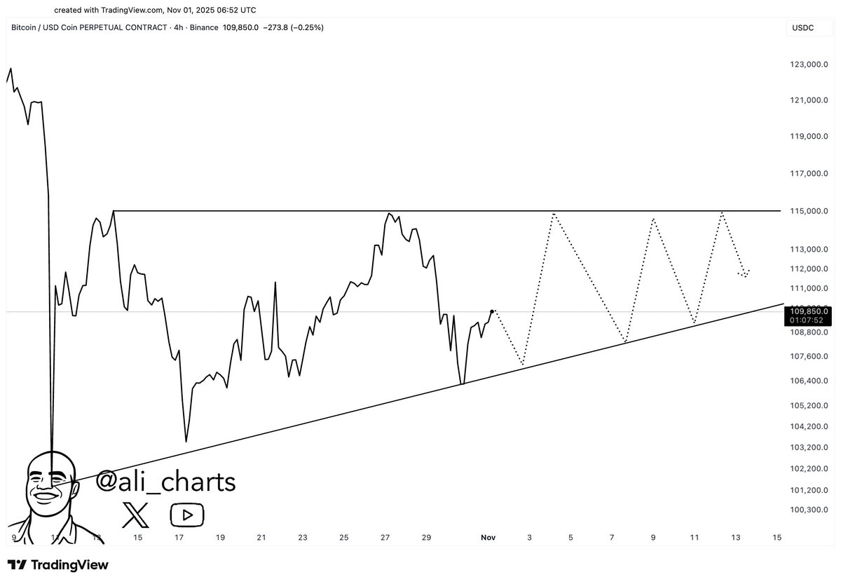 Ali Martinez current BTC price He still thinks it’s high. BTC It is lingering near $111,000 and forming a new triangle according to the analyst’s chart. Accordingly, Martinez warned that the $107,500 support might be retested before the $115,000 resistance is tested. This situation may bring about deeper bottoms in many altcoins that are already at the bottom.
