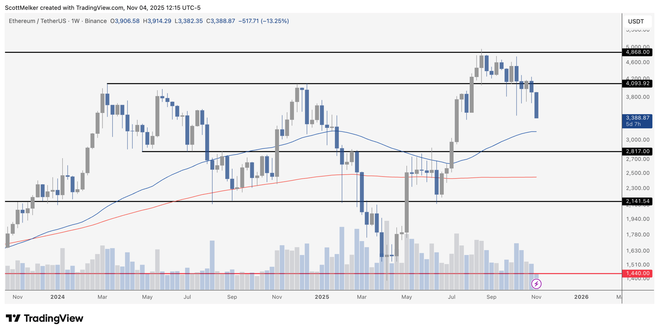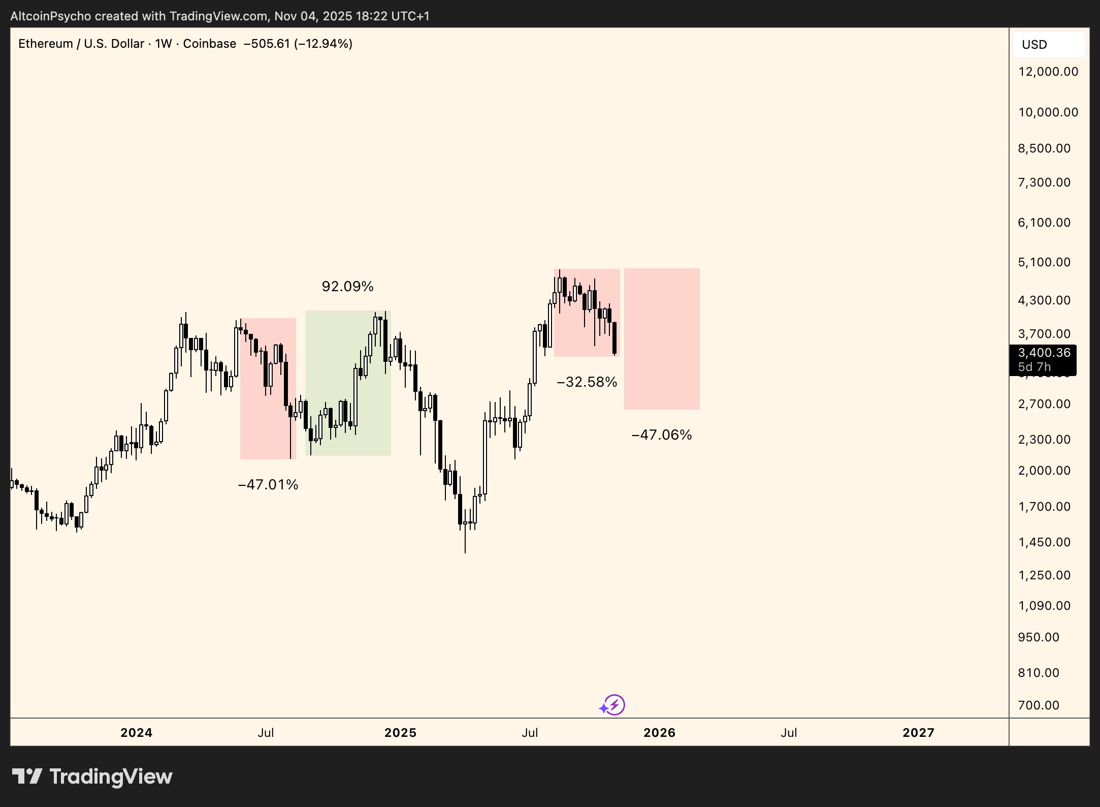 “Look at this to show how stupid things can get in 2025. ETH lost 47% in 75 days, then gained 92%. The current decline is only 32% from the high, so if we repeat the situation in 2024, ETH could reach $2600. What’s even crazier is that most of these big declines tend to recover and reach new highs.”