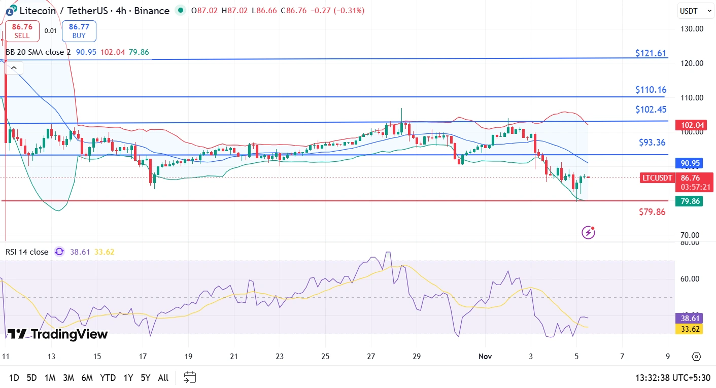 The price chart clearly shows Litecoin’s efforts to form a short-term bottom. The price, which dropped to $80.10 in the last 24 hours, recovered to $88.82 with strong purchases. RSI indicator rose to 35.92 and moved away from the oversold zone, MACD The data indicates that the downward momentum has decreased with -0.26. Price, Bollinger BandIt jumped from the lower band of and the horizontal support line, signaling a short-term recovery.