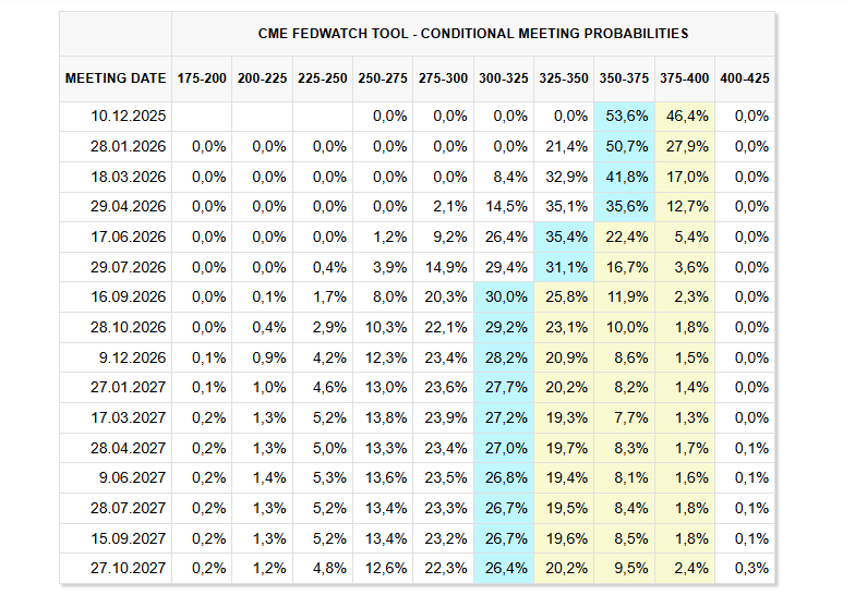 Amid fragile consumer confidence and ongoing inflationary pressures Fed’s The possibility of a rate cut in December is not certain. The probability of a 25bp reduction for the interest rate decision to be announced after 27 days is at 53 percent.