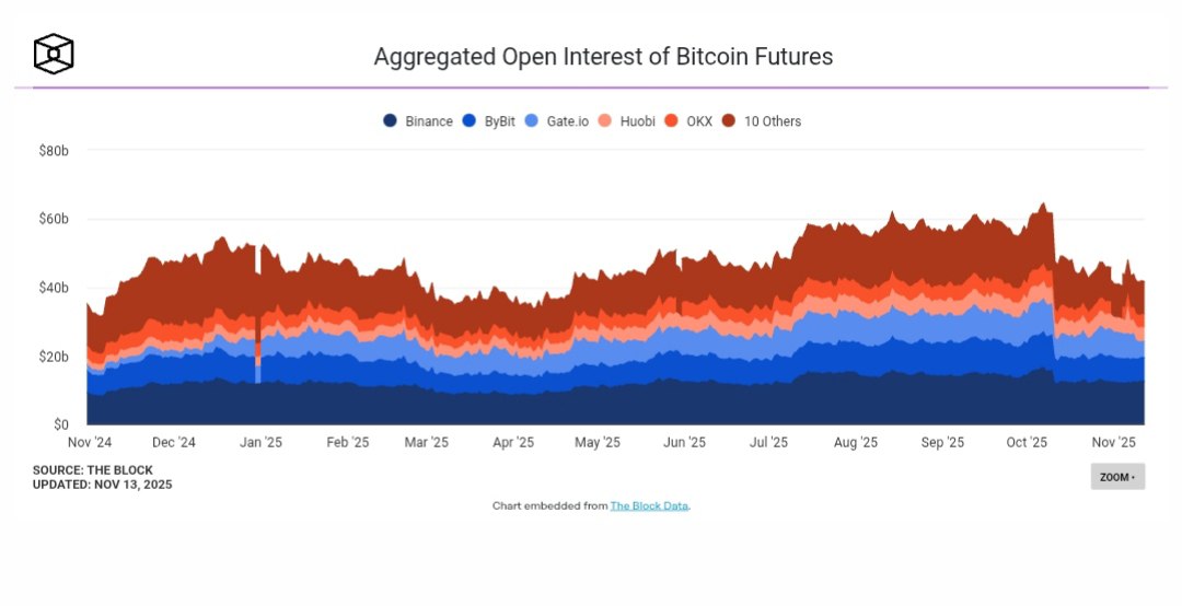 “Futures leverage has been reset, but whales are quietly buying the dip. Open interest is down 34% from $64 billion to $42 billion.