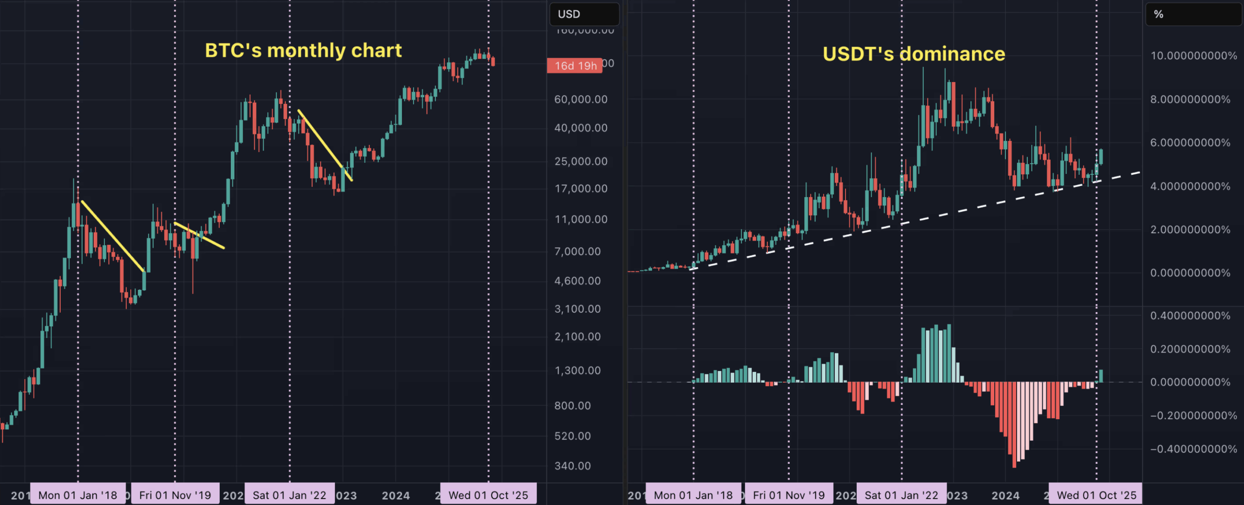 Past data of Tether market dominanceIt shows that increases in prices generally coincide with bear markets. A common scenario is that when USDT’s market share increases, selling pressure increases in Bitcoin and other altcoins. This approach confirms the periods when investors withdraw from risky assets and look for safe havens.