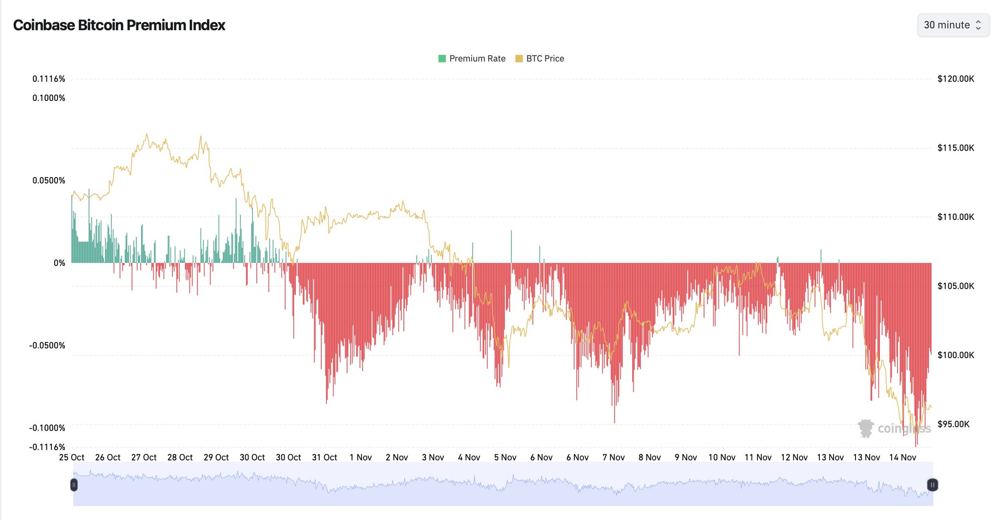Coinbase Premium, which shows the appetite of US investors, has been net negative since October 30, and appetite has not yet recovered as fear continues to grow.