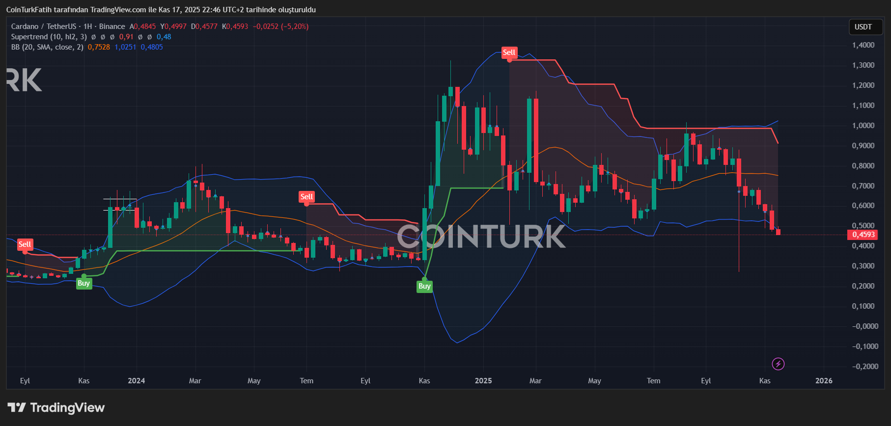 Finally ADA Coin many others from cryptocurrency He is going through worse days. The only motivation is that it has not reached the October 10 bottom yet. Continued closes below $0.53 are pushing the price towards $0.434. The last stop may be $0.33 in the continuation of the decline.