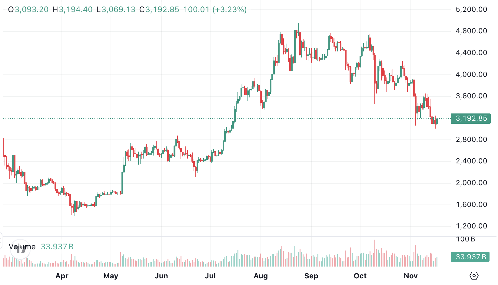 $3,216.28 With the sales wave that shook the entire cryptocurrency market in the last 7 days, it fell below the $ 3,100 threshold. ETH fell below this level for the first time since November 4. CryptoAppsy According to data, it is trading at $ 3,193 with a decrease of 0.47 percent in the last 24 hours. Experts state that outflows, especially in spot Ethereum ETFs, indicate a strong weakening in investor confidence.
