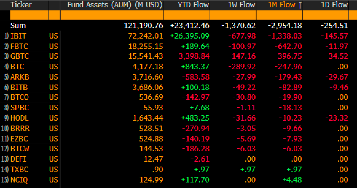 Bitcoin ETFs It exited for $250 million, it exited for $3 billion last month, about 2.5% of total assets, 97.5% is still there. Still, $23 billion year-to-date, that’s incredible. People forget how much of an uptick there was in the 18 months before the sell-off. “Overall, it’s not bad, considering the ‘over-the-top horror’ vibe.”