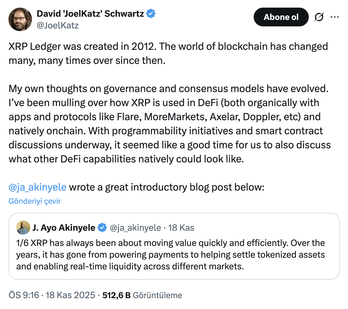 Schwartz, X In his statement on his account, governance and consensus Stating that his thoughts on models have evolved over time, he said that it is natural for XRPL to discuss new designs suitable for today’s DeFi ecosystem. He pointed out that the current model, developed in 2012, needs to be rethought according to today’s smart contract-oriented structure.