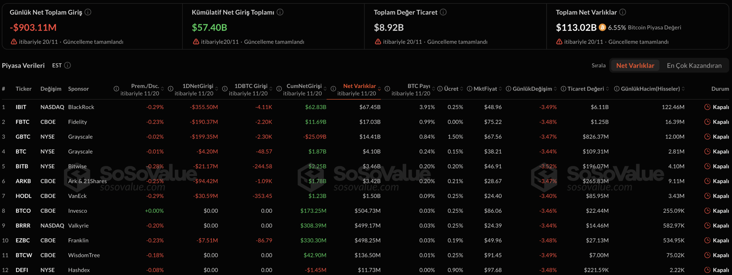 $82,845.16 There was a net outflow of $903 million from ETFs on November 20. Thus, the sharpest daily loss was recorded in ETFs since the tariff shock in February. Data shows investors are rapidly moving away from risky assets and market sentiment has changed drastically.