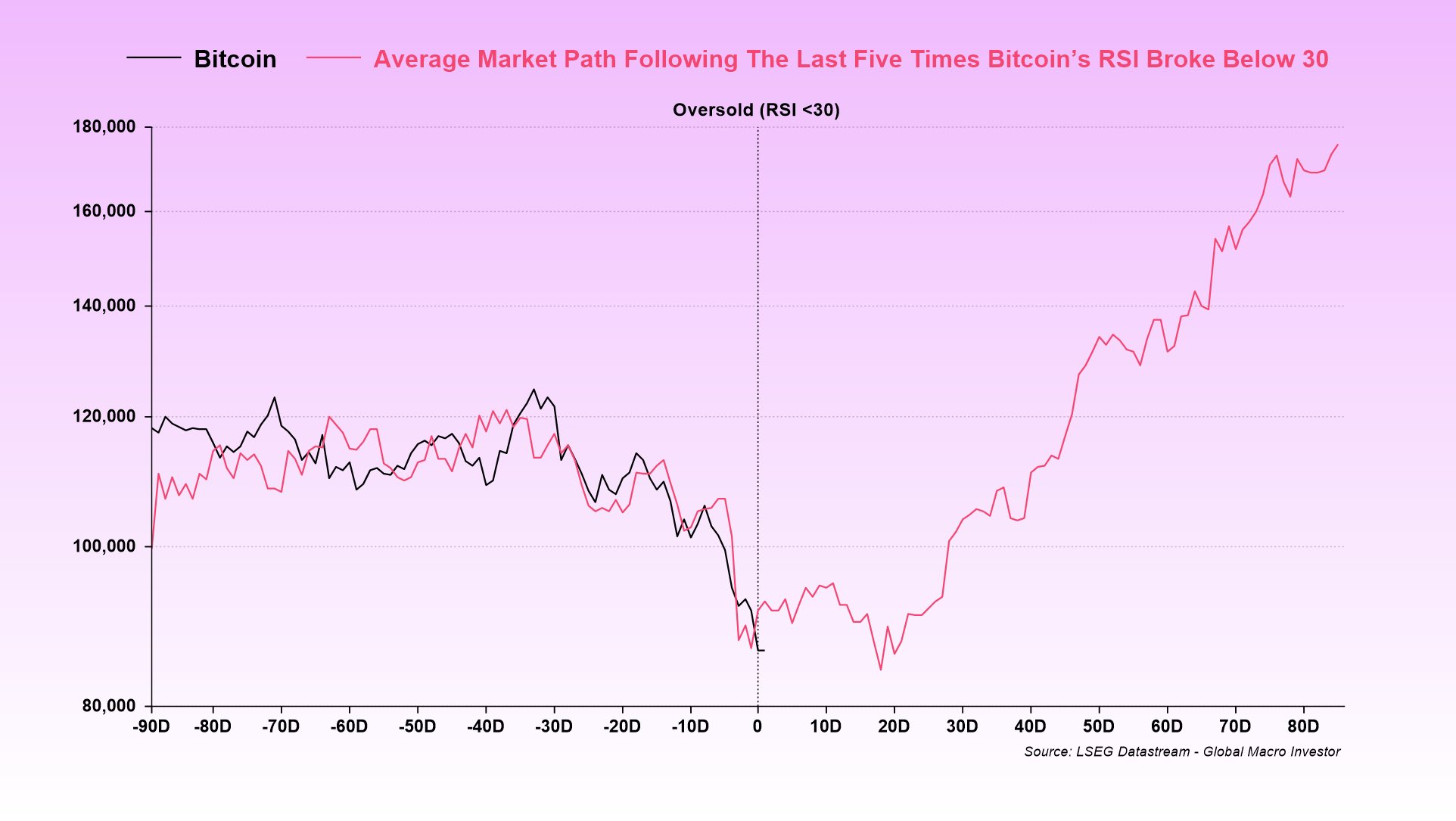 $82,845.16The last five times the RSI has fallen below 30, the path of least resistance has been higher on average.