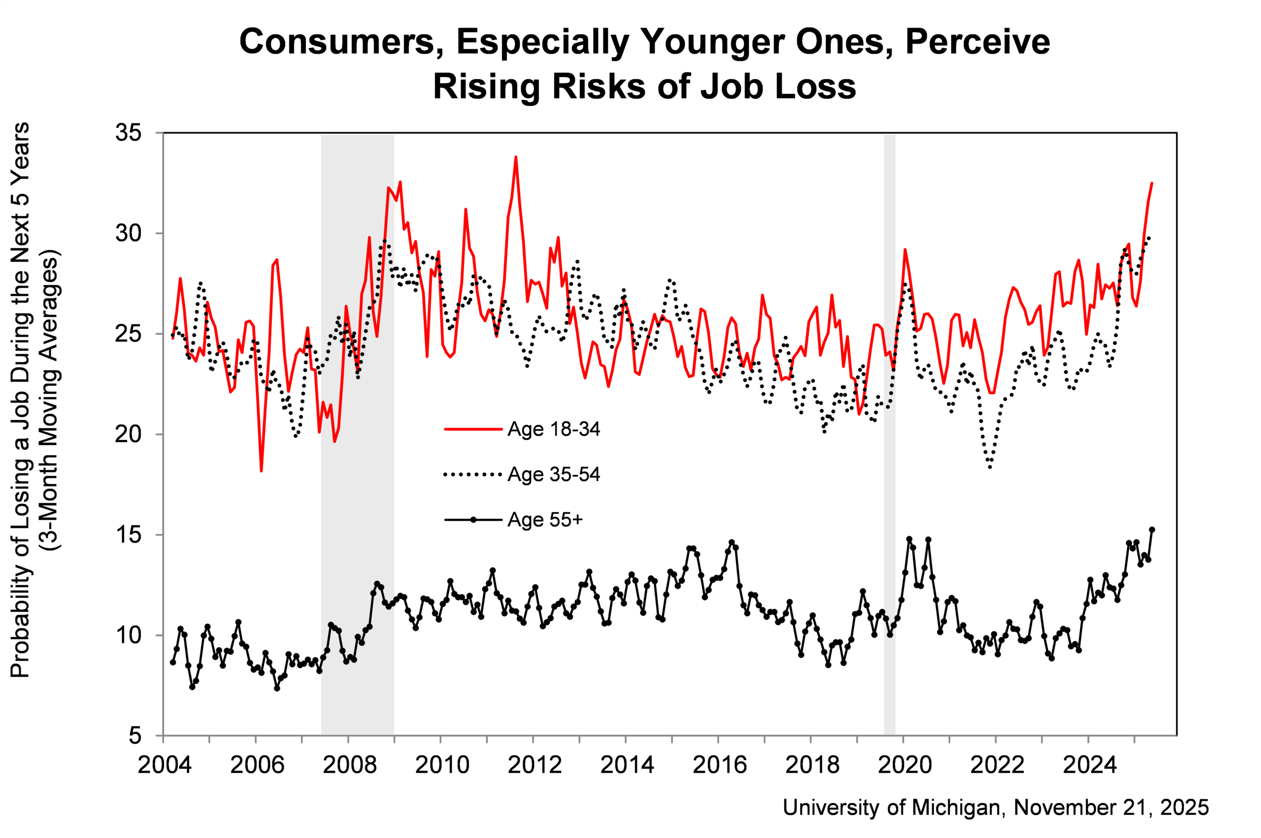 Inflation expectations for the coming year decreased from 4.6% last month to 4.5% this month. This represents three months of decline in a row, but short-term inflation expectations still remain above January’s 3.3%. Long-term inflation expectations fell to 3.4% in November from 3.9% last month. These expectations are currently slightly above the 3.2% level in January 2025. “Despite these improvements in the future course of inflation, consumers continue to report that their personal finances are currently under pressure from higher prices.”