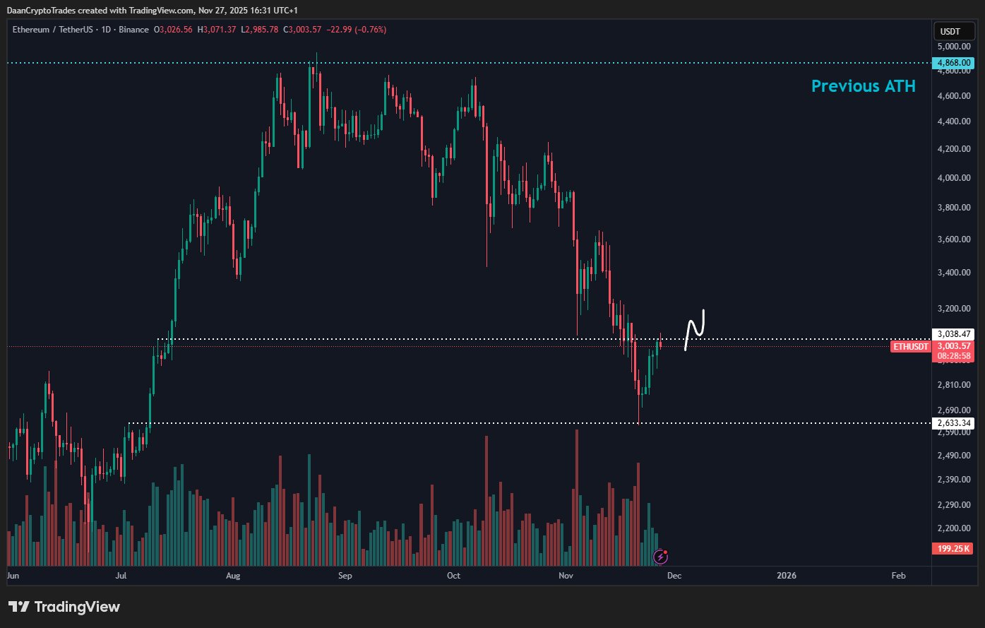 ETH He won $3,000. For now, the area targeted by DaanCrypto is between $3,300 and $3,400. However, the analyst offers a medium-term assessment and warns that levels below 2,000 dollars may be seen again in an environment where $ 2,600 was lost. The analyst, who marked 2 key levels in the chart below, reminds us that we are in the range where the previous rise started and we have not yet escaped from the decision zone.