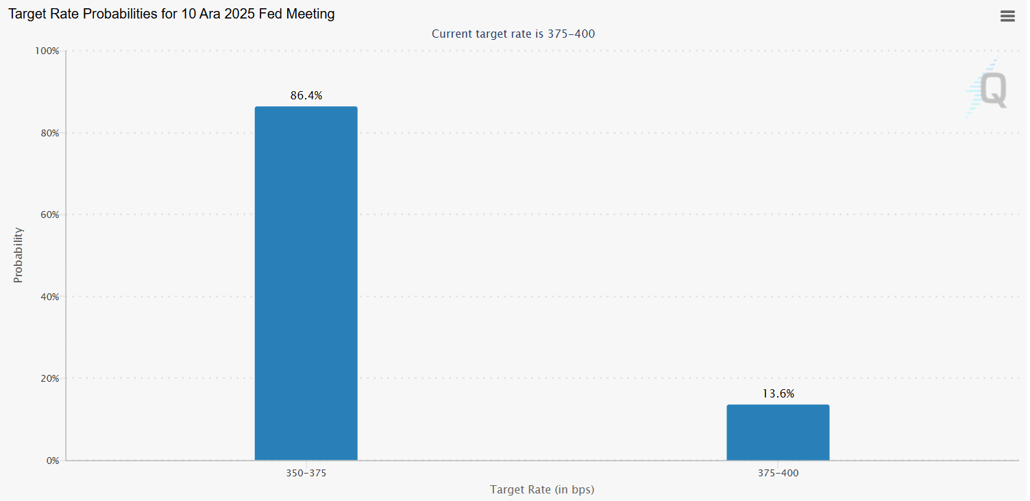 Due to the government shutdown, we could not see many important reports and some of them were even canceled by US institutions, meaning they will not be published. However, the Fed must announce its interest rate decision on December 10. The decision is almost final and a 25bp cut is expected. However Fed President Powell’s His message will be watched closely.