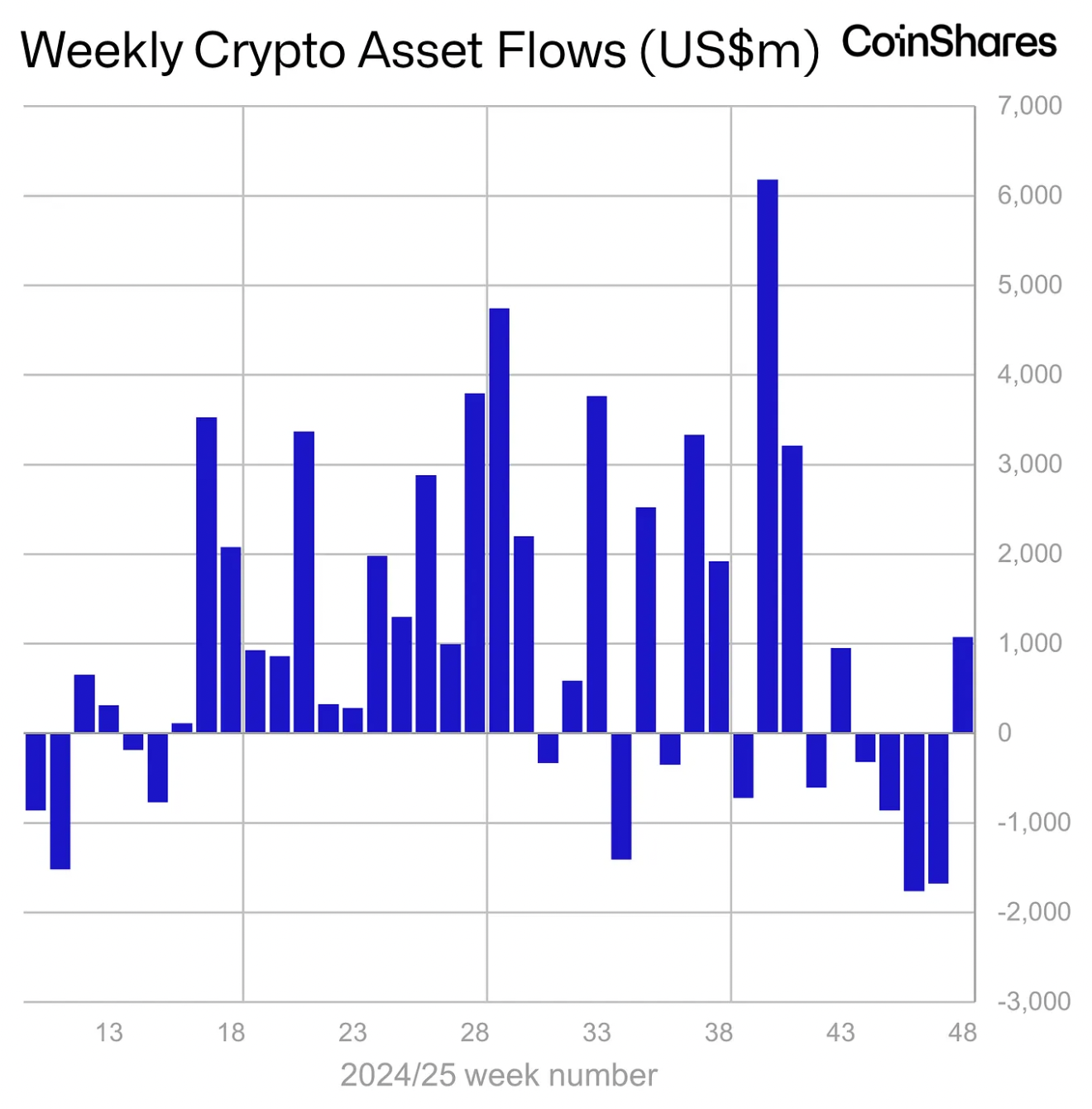 The US claimed the bulk of total flows, with $994 million inflows despite the Thanksgiving holiday. Canada 97.6 million dollars, Switzerland While it attracted an inflow of 24.6 million dollars, GermanyAn outflow of 55.5 million dollars was seen in . The transaction volume in cryptocurrency-based investment products decreased to 24 billion dollars due to the holiday week, remaining well below the record level of 56 billion dollars in the previous week.