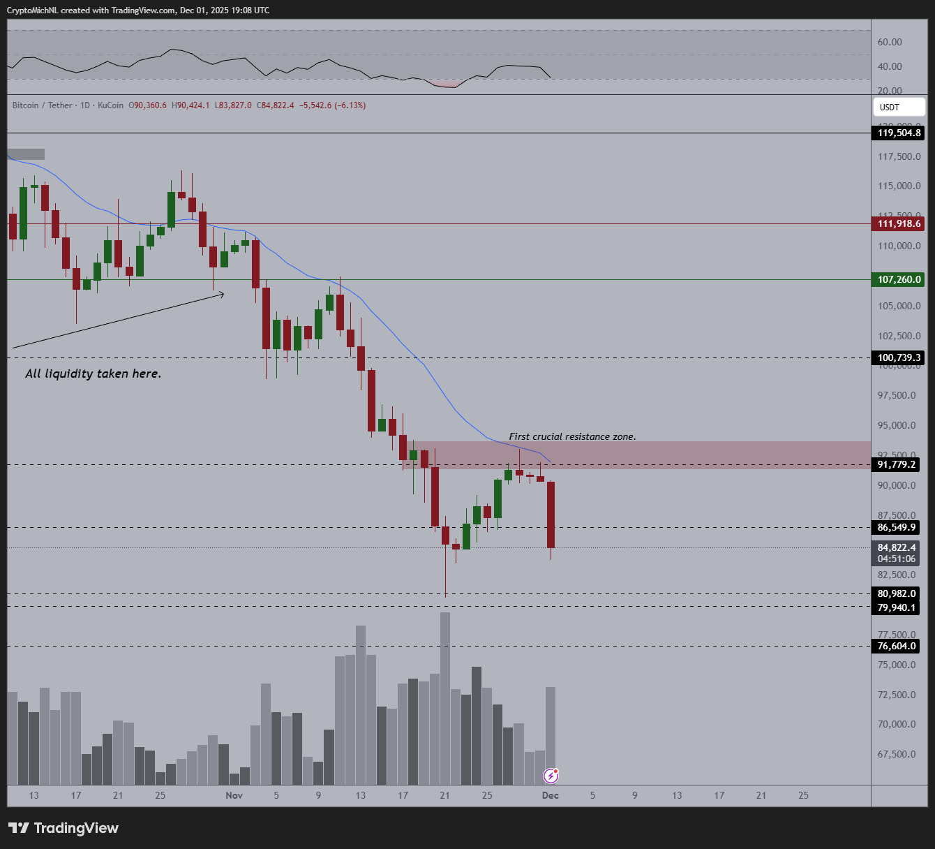 $86,219.53 Let’s see how prices react once it is tested below the $83,400 low. If this does not provide enough buying pressure, we will test the bottom below $81,000 as support. “Probably within the next few days.”