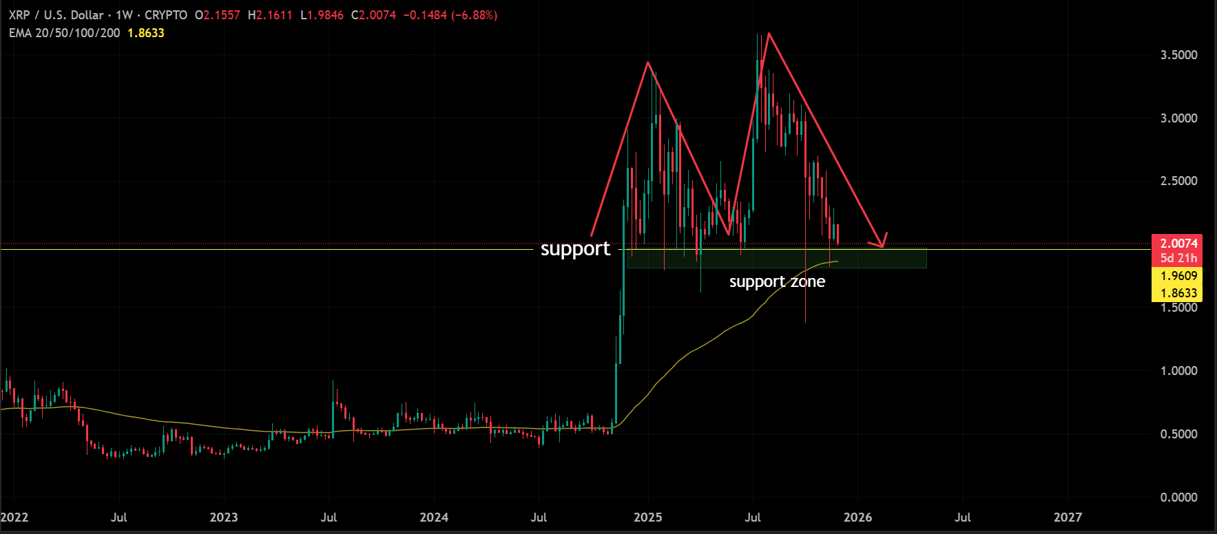 The weekly candle close should not be below $1.8, but if this happens, the long-term double top formation will be confirmed. This situation may have devastating consequences for XRP Coin as the downtrend becomes dominant.