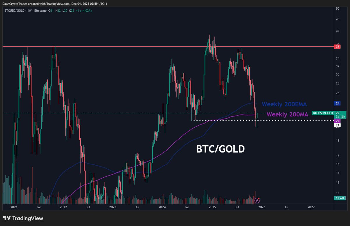 Gold It has reached new ATH levels and is still finding buyers at very high prices. Over the years, BTC’s performance against Gold has been closely watched by investors. Having fallen to its lowest level in the summer of 2024, BTC today attracted the attention of the analyst with the pseudonym DaanCrypto and he thinks that the return may begin.