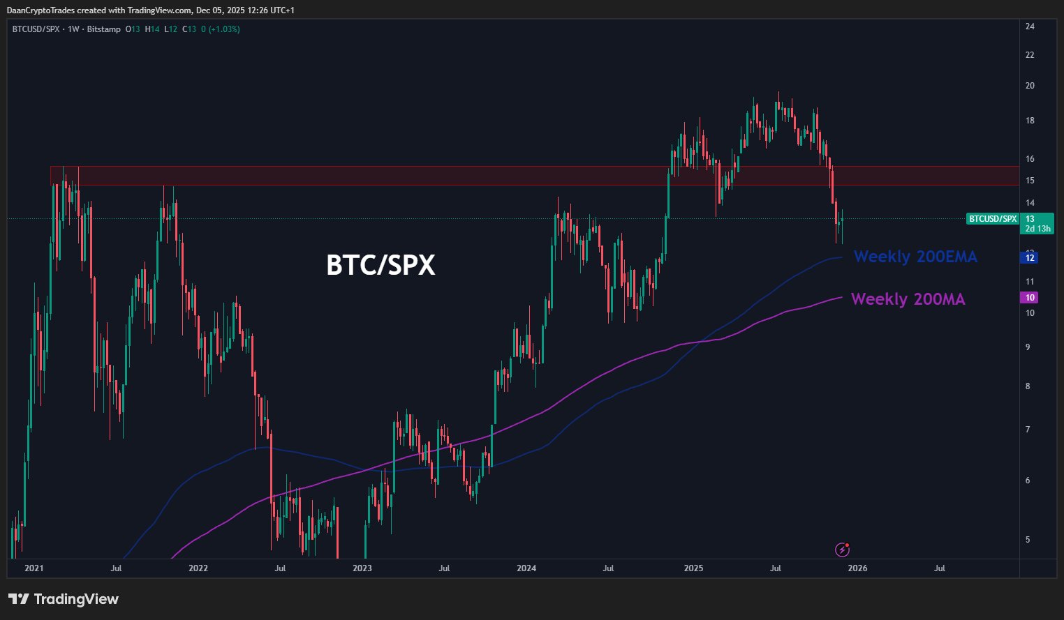 What a coincidence, today DaanCrypto also discussed the situation of BTC compared to the S&P 500. BTC has fallen 37% relative to the exchange from its local relative highs in July this year. While stocks were breaking new records and Nvidia was exceeding the $5 trillion threshold, it was painful that cryptocurrencies did not accompany them on the rise.