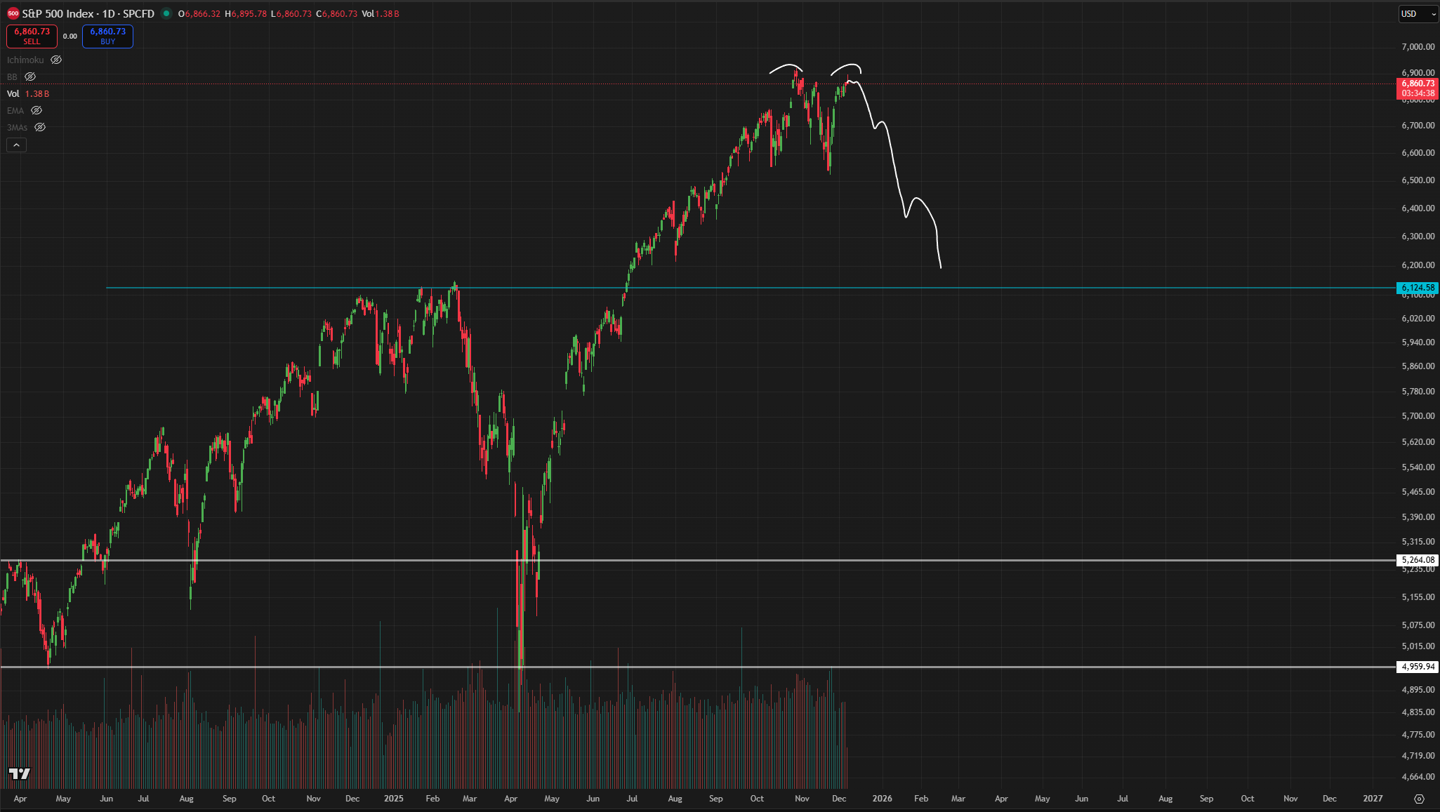 “Look at the daily chart of the S&P 500. It is described in technical analyst textbooks. double top return occurs.